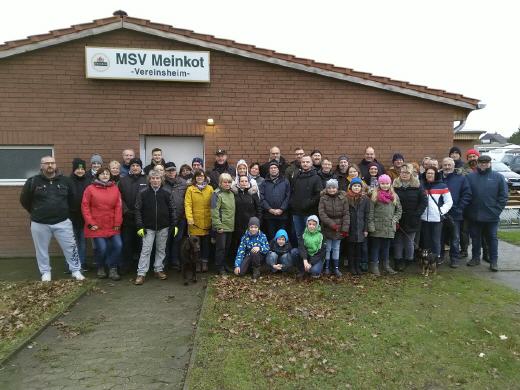 Grünkohlwanderung am 05.01.2019 Bei sehr guter Beteligung fand am 05.01.2019 die traditionelle Grünkohlwanderung statt. 45 Wanderinnen und Wanderer begaben sich Punkt 10 Uhr auf den Weg zu einem rund 2,5-stündigen Rundkurs. Zwischenstation wurde auf halbem Weg an der Fleitmühle in Bahrdorf gemacht, wo Hans-Walter Heine bereits mit warmen Getränken auf die Gruppe wartete. Den Abschluss bildete das traditionelle Grünkohlessen, zu dem sich 10 weitere Personen im Sportheim einfanden. Der MSV Meinkot bedankt sich bei allen Teilnehmerinnen und Teilnehmern für die gelungene Veranstaltung, die bis weit in den Abend hineinreichte :-).