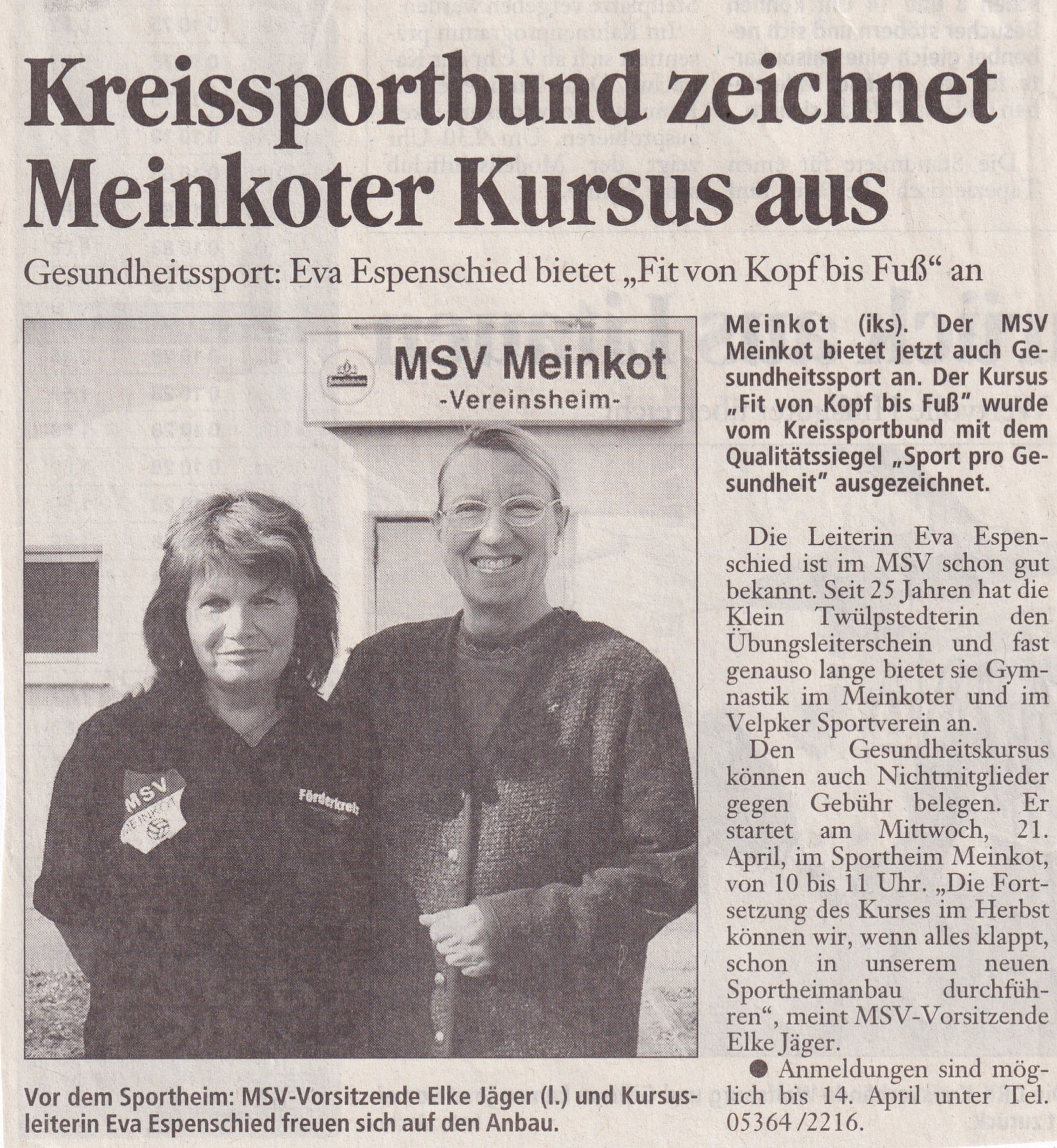 Die Feuerwehr Meinkot hat wieder einen neuen (alten) Ortsbrandmeister. Werner Nentwig wurde am 23.01.2010 gewählt. Die WAZ berichtet in ihrer Ausgabe vom 25.01.2010 davon. Den Artikel gibt es hier [190 KB]