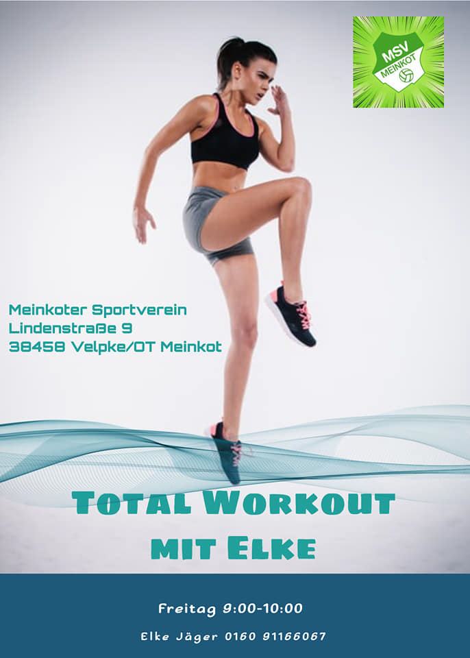 Total Workout Leitung Elke Jäger jaeger@msv-meinkot.de freitags 9.00 Uhr bis 10.00 UhrSportheim Meinkot